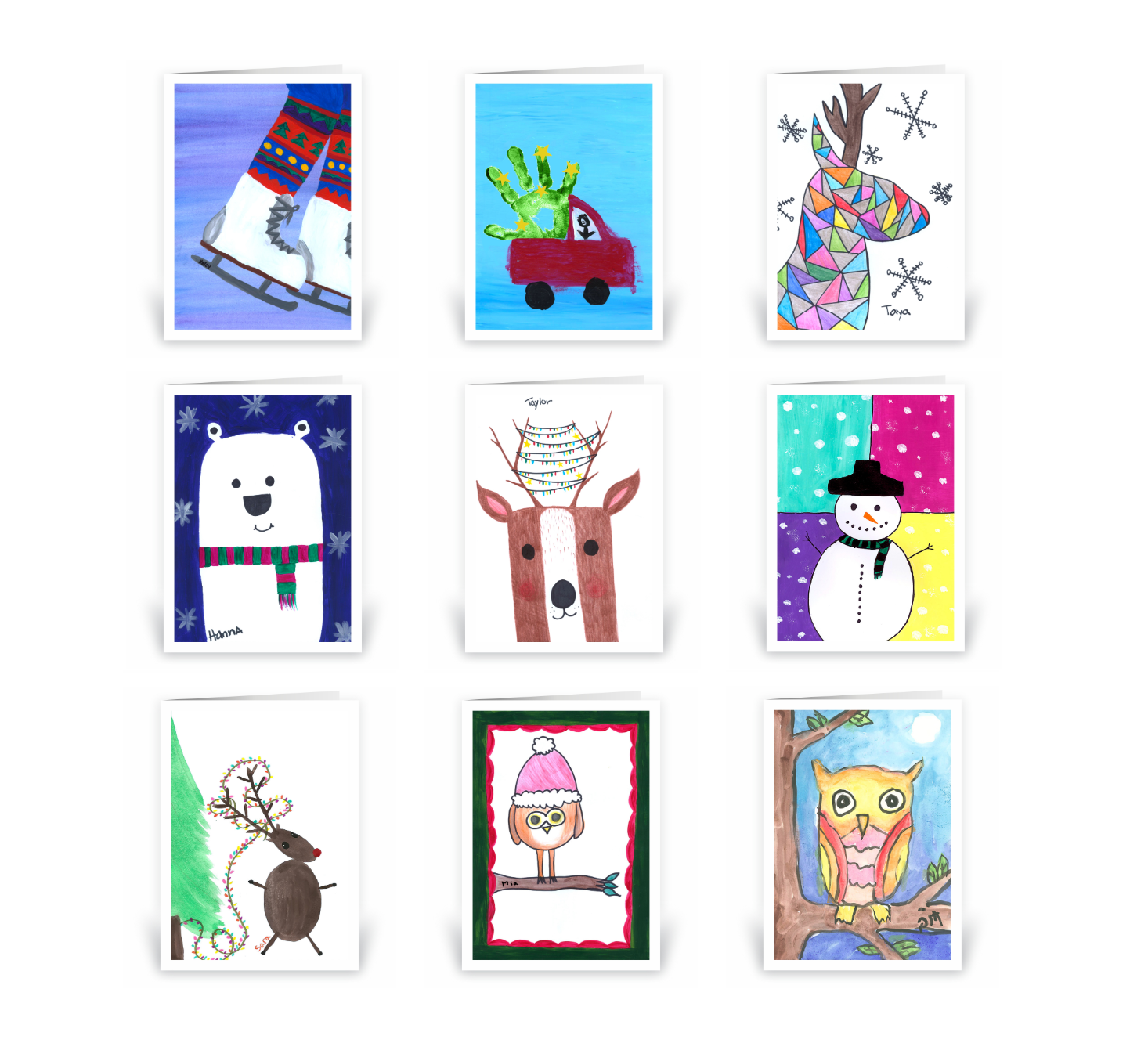 Purchase cards with your own child's artwork on the front, and their name & age on the back. Cards are blank inside, and great to use for the holidays, thank you cards, birthdays, letter writing, and more! Also available are plaques, puzzles, ornaments, notebooks, and playing cards featuring your child’s artwork.